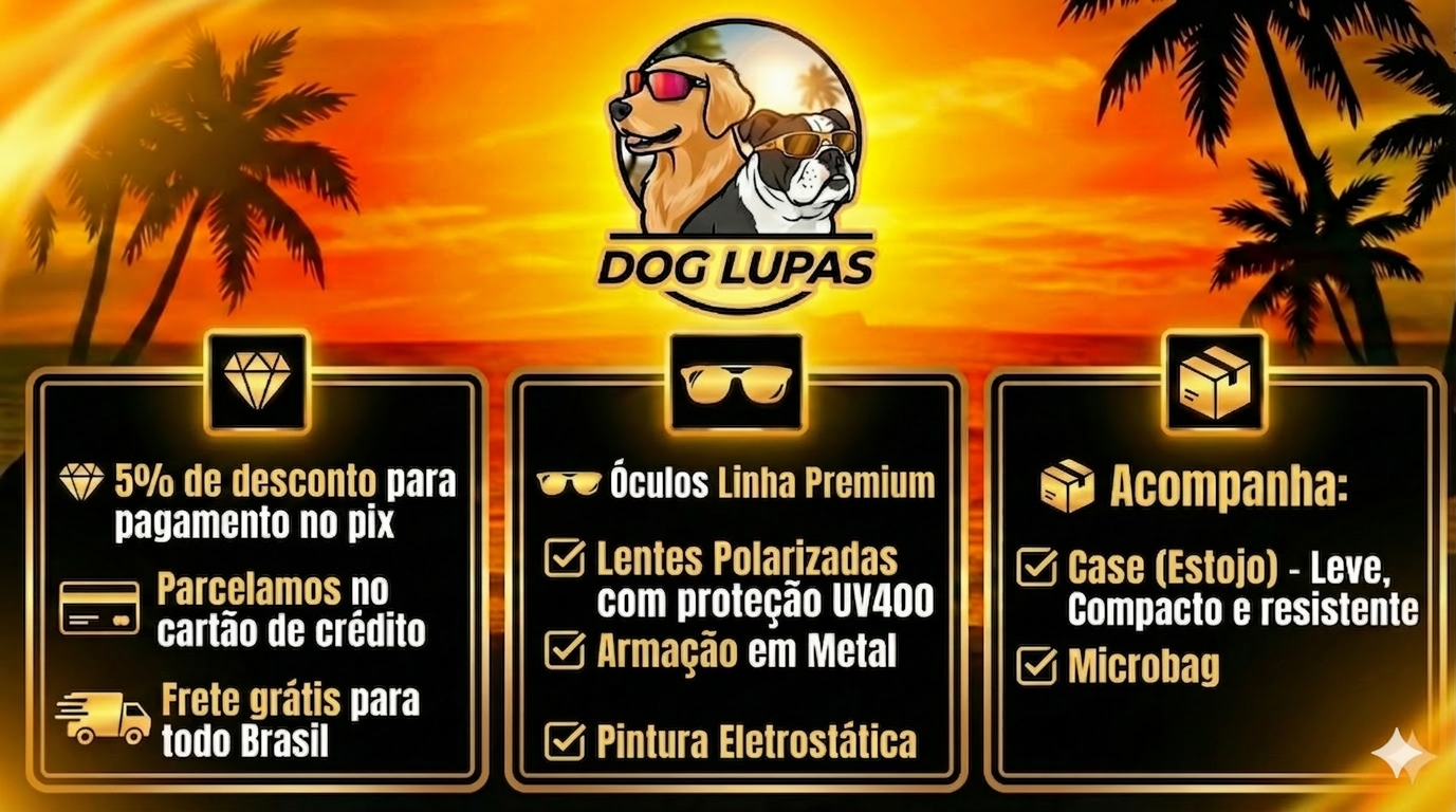 Qualidade Premium. Garantia de 90 dias contra qualquer defeito de fabricação. Lentes com proteção UV400 comprovada.